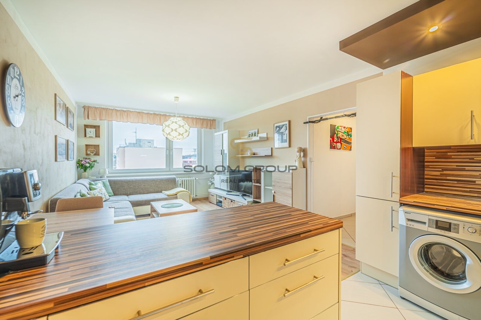 Byt po úpravách – kuchyňská linka vč. spotřebičů – lednice s mrazákem, sklokeramická deska, horkovzdušná trouba, myčka, digestoř,