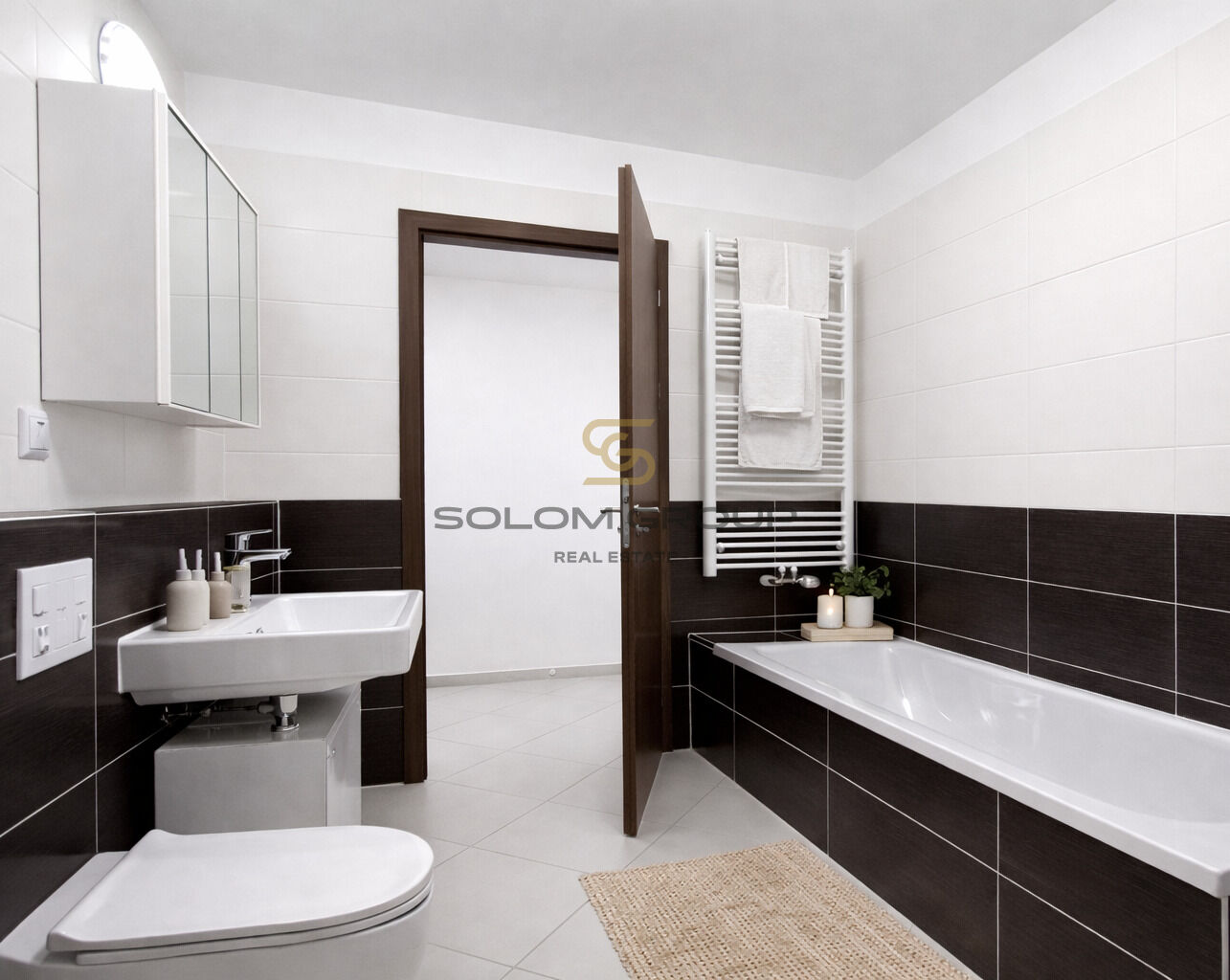 Byt Vám je předán hotový vč. kuchyňské linky Oresi se spotřebiči (indukce, digestoř, el. trouba, myčka, lednice). Zařízená koupelna (umyvadlo, zrcadlo, pod umyvadlová skříňka, pračka, vana, topný žebřík a závěsné WC), dále vinylová podlaha a dlažba, v chodbě velká šatní skříň, interiérové dveře, plastová okna, nové rozvody vody, elektřiny a odpadů. Na oknech garnýže vč. záclon a závěsů.