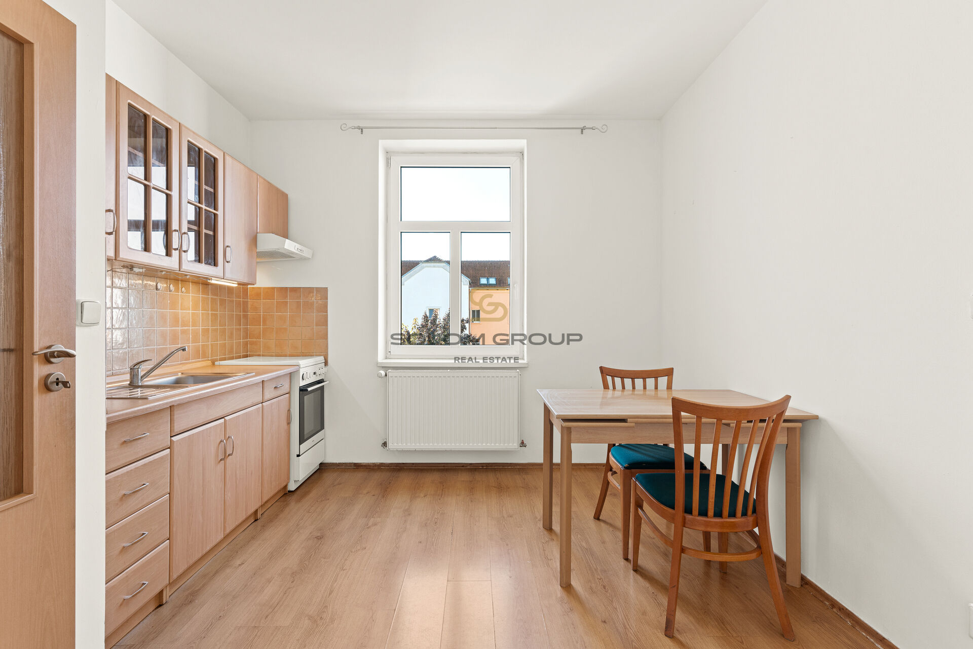 Byt po úpravách – Kuchyňská linka vč. spotřebičů – plynový sporák, elektrická trouba, digestoř, plastová okna, interiérové dveře,