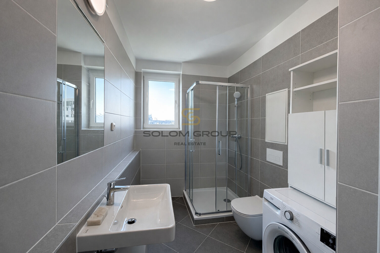 V koupelně sprchový kout, topný žebřík, toaleta a pračka. Dále interiérové dveře, plastová okna, vinylová podlaha a dlažba, nové rozvody vody, elektřiny a odpadů, protipožární vchodové dveře.