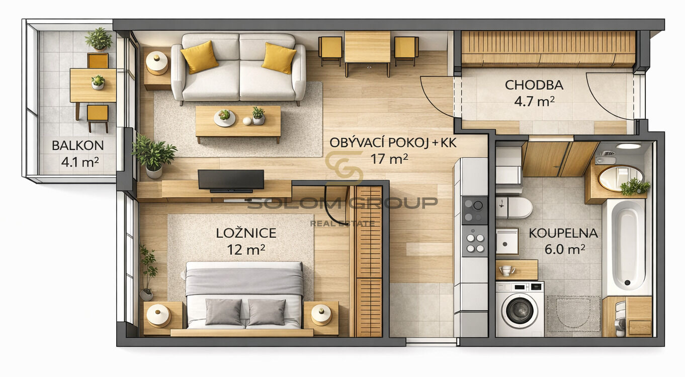 Pronájem nového bytu 2+kk o velikosti 39,7 m² + balkon 4,1 m², který se nachází v 1. patře cihlové novostavby v rezidenci Malý Háj (dům G4) s výhledem do klidného vnitrobloku.